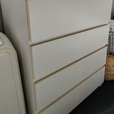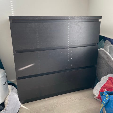 Annetaan Ikean huonokuntoinen Malm-lipasto ja valkoinen päällyslasi. Annetaan ainoastaan pakettina. Kaapin molemmissa ylimmissä laatikoissa on pohjassa vedestä tullut kupruilu ja toisen lipaston yksi laatikon kulma on vaurioitunut. Annetaan tässä kunnossa. Ovat olleet asunnossa, jossa remontoidaan eli varmasti pölyiset ja likaiset. Siivous jää hakijalle.