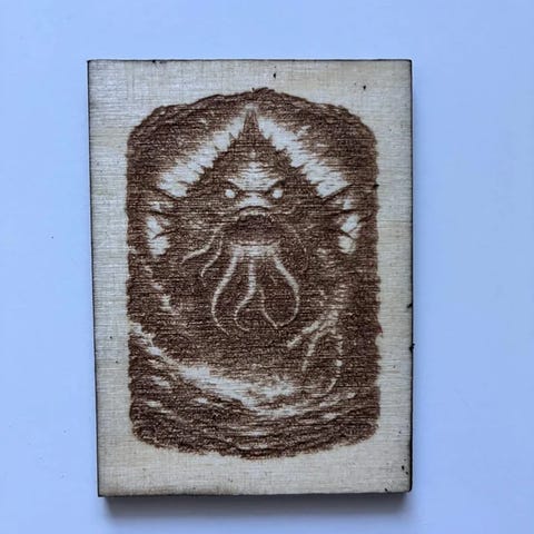 8x6cm kokoinen magneetti / jääkaappimagneetti. Kuva ja teksti kaiverrettu puuhun
