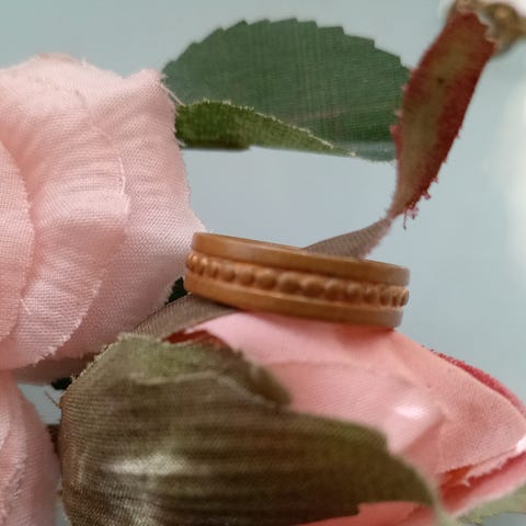 Kalevala sormus naisille. Kapea, pyöreä sormus, jossa kohokuvioitu koristekuviointi ympäri sormuksen. Sopii käytettäväksi arjessa tai juhlatilaisuuksissa yksinään tai muiden sormusten kanssa. Pronssia koko n.17.5 ajan patinaa