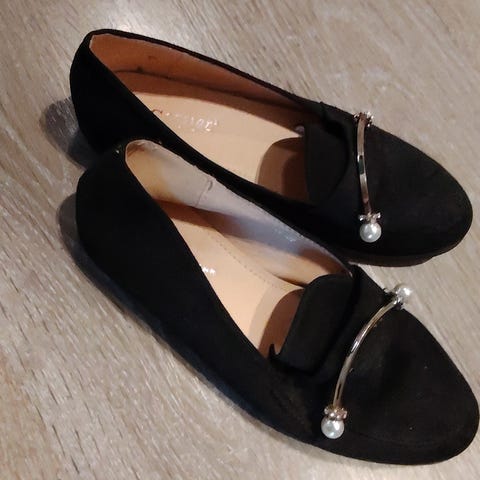 Helmiäisen valkoiset ballerinat, joissa on noin 4 cm korko. Ballerinat ovat pehmeää nahkaa ja erittäin hyvät jalassa. (IGI & CO -kengät ovat italialaista laatua ja tyyliä tinkimättä mukavuudesta). Ballerinat ovat käytetyt, joissa näkyy paikottain tummumista esimerkiksi kantapäissä ja muualla vähemmän. Sisäpuolelta hopeaväri on kulunut osittain nahasta pois paljastaen vaalean nahan. Ballerinoissa on venyke, jonka reunassa on kaunis säihkyvä koriste. Pohja on mustaa kumia. Koko on 38, joka vastaa mielestäni aivan oikein 38. Ovat maksaneet uutena paljon mutta nyt myyn ne vain 15 eurolla, koska käytön jälkiä näkyy. Olen yrittänyt ottaa paljon kuvia, jotta niiden kunto välittyisi oikein. Tule hakemaan ballerinat Tikkurilasta Vantaalta.