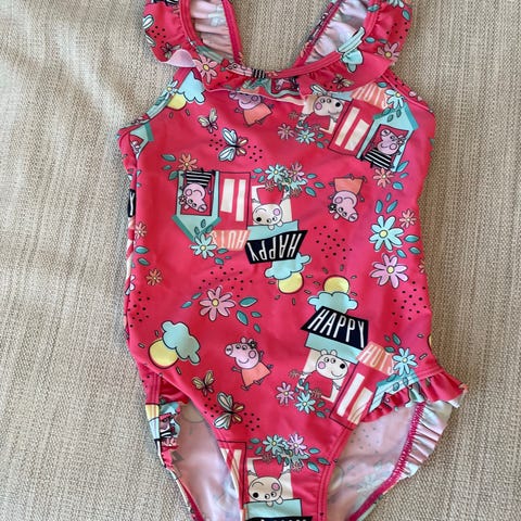 Pinkki Mini Rodinin koirapainatuksella oleva uimapuku. Koko 80/86, mielestäni vastaa 74/80 koska oli meillä pituudesta tosi nafti jo 83 mittaisella, siksi jäänyt vähälle käytölle.