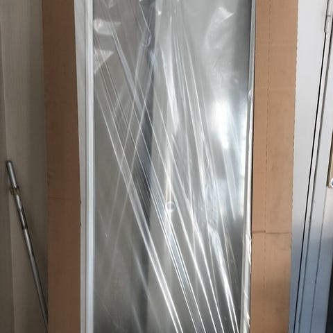 Valkoinen sisäväliovi lasilla. Lev.karmeineen 1m,