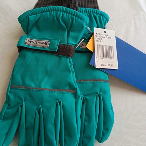 Käytetty yhdellä tytöllä. Kulumaa sormen päissä hiukka, mutta ajaa vielä asiansa mielestäni. Eläimetön ja savuton talous.