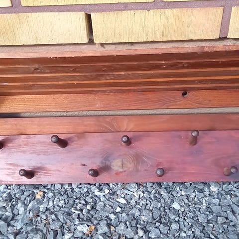 Kohtalaisessa kunnossa oleva naulakko KP 21, Keravan Puuteollisuus 1940-50-luku.