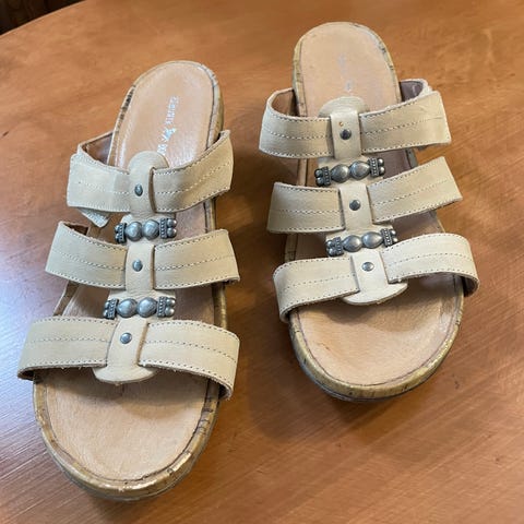 Hyväkuntoiset ja tukevat sandaalit, joissa useampi tarrakiinnitys – helppo säätää istuvaksi. Pehmeä pohja tekee käytöstä miellyttävää. Sopivat hyvin arkeen ja kesäkäyttöön.