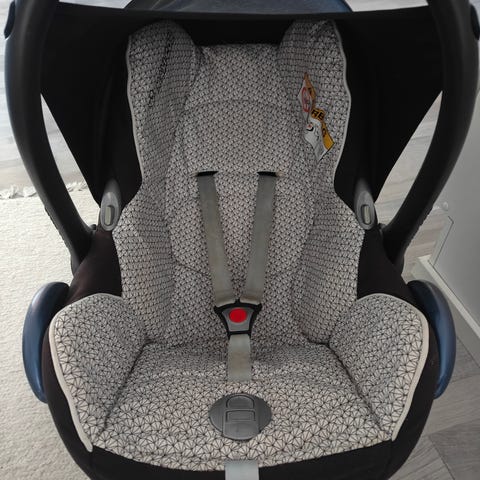 Miniune brändin turvaistuin hyvässä kunnossa ja kylpytuki