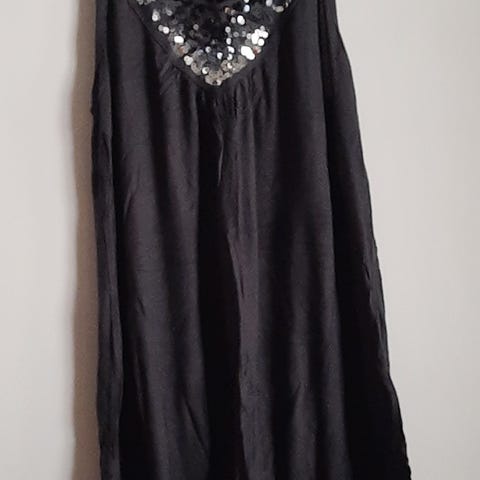 Ajaton musta uudenveroinen toppi kokoa M. Itse ommeltu, ei tietoa kankaasta tarkemmin, mutta laadukas ja pysyy sileänä.