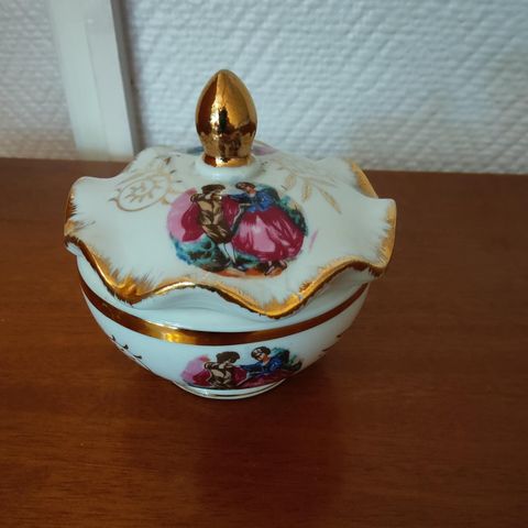 Hyväkuntoinen posliinirasia esim korurasiaksi.