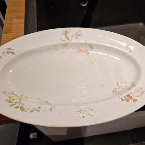 Arabia Pellervo-sarjan kulho. Pituus on 22cm. Kunto on hyvä ja siisti eikä kulhossa ole halkeamia tai lohkeamia, ainoastaan pohjassa on tummuutta, joka näkyy kuvassa.