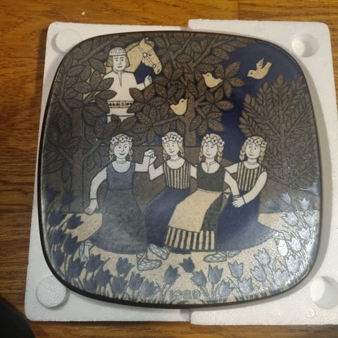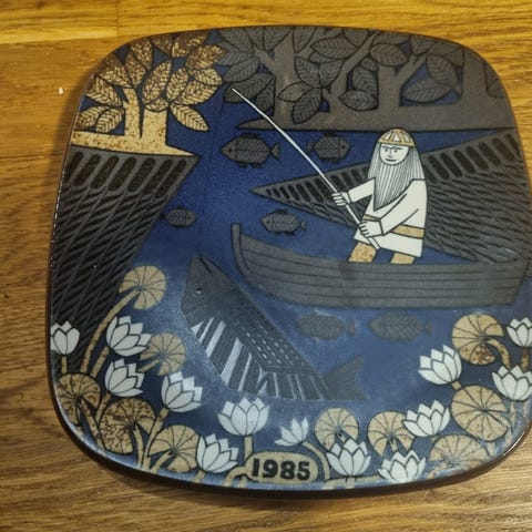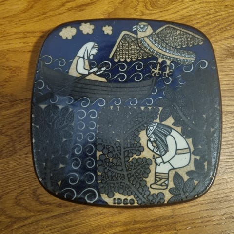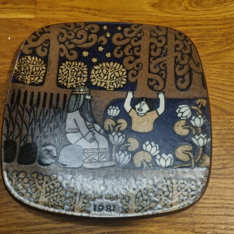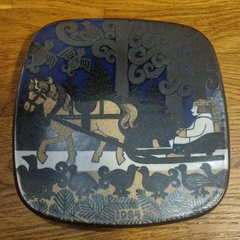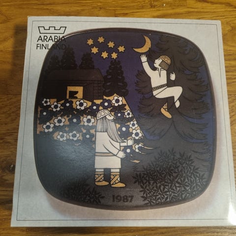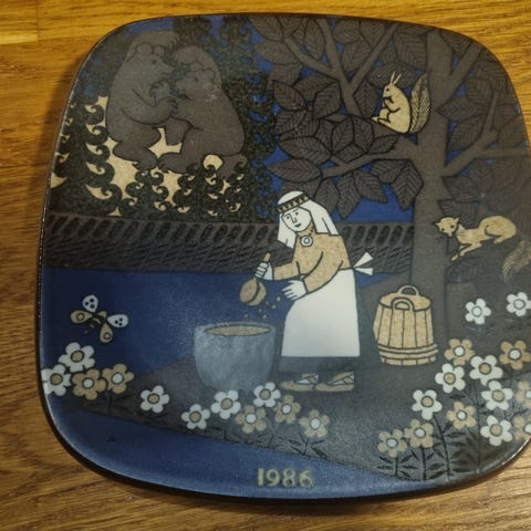 Arabia Kalevala-vuosilautanen vuodelta 1982, suunnittelijana Raija Uosikkinen.