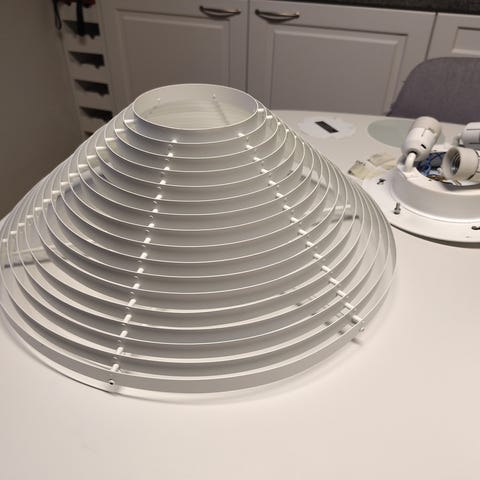 suunnittelija Alvar Aalto. Valaisin on valmistettu valkoisesta opaalilasista, joka antaa pehmeän ja tasaisen valon. Malli sopii esimerkiksi ruokapöydän, olohuoneen tai eteisen yleisvalaisimeksi.