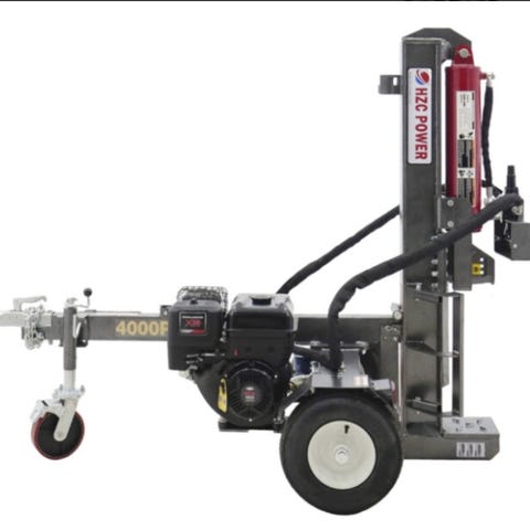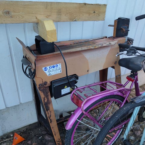 Halot on tehty ja kone joutaa seuraaville halkosavotoille. Pystymallin hydraulihalkoja omalla hydrauliikalla.