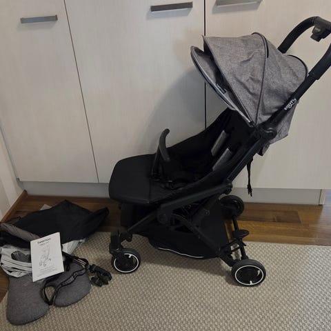 Muutaman kerran käytössä olleet matkarattaat, meille jääneet turhiksi. Helppokäyttöiset ja kevyet mutta ketterät rattaat! Saa täysin makuuasentoon, pieni aurinkolippa. Kivasti tilaa reissutavaroille. Jotakin likaa löysin tavarakorista, en alkanut puhdistelemaan mutta varmasti lähtee pesemällä pois. Saa lukittua kuljetettavaksi niin, ettei rämähdä auki kantaessa.