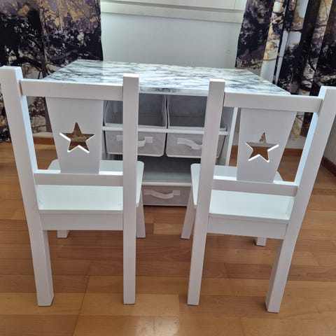DIO Lasten pöytäryhmä. Ostettu Vekestä. Pöytä ja 3 tuolia.