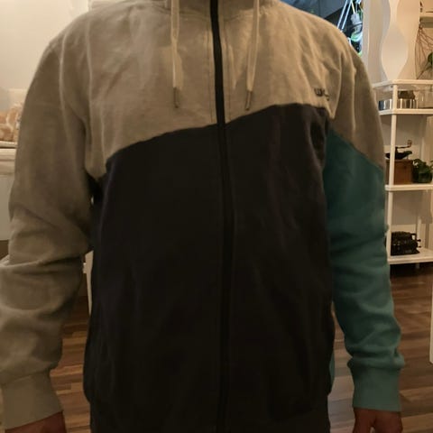 Myydään huppari miehille, koko XL. Monivärinen (kirjava) malli, jossa etuvetoketju ja huppu. Edessä taskut ja useita väripaneeleja.