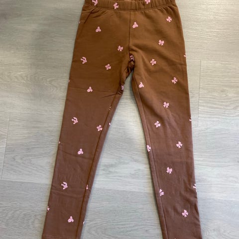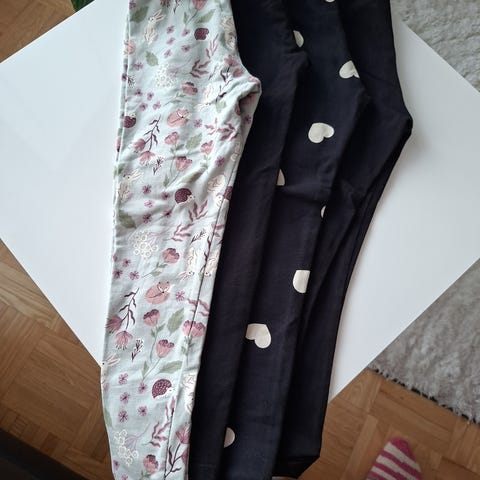 Ihanat pastellisävyiset leggingsit koossa 116. Vähän paksumpi materiaali, pehmeä sisäpuoli. Säädettävä vyötärö. Yhdellä lapsella olleet käytössä. Muuten siistissä kunnossa, mutta toisen polven kohdalla pientä tahraa ja pikkuinen reikä (ks. kuva).