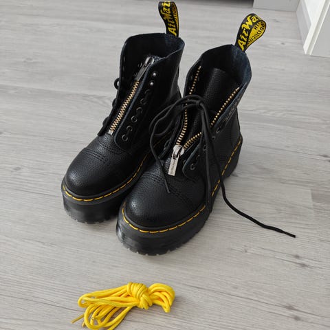 Dr. Martens saappaat, koko 38. Mustat nauhalliset nahkasaappaat paksulla platform-pohjalla. Kenkiä käytetty n.3 kertaa jolloin koko todettu liian pieneksi itselleni. Kunto uutta vastaava.