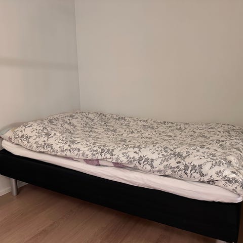 Noin 2 v. vanha siisti sänky. Pohjasta vähän ottanut damagea edellisellä omistajalla (katso kuva), mutta tämä on lähinnä estetiikkakysymys, sillä sänky on muuten aivan moitteeton. Petari tulee mukana.