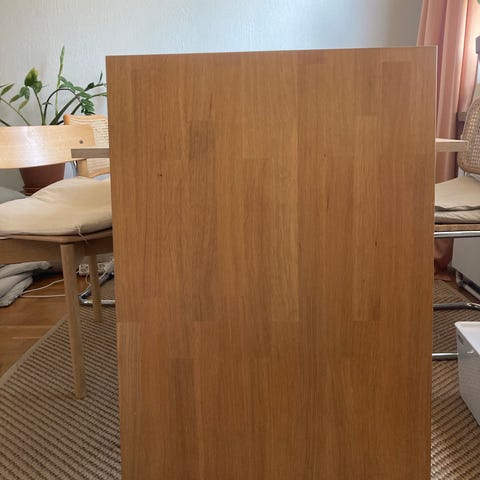 Annetaan kuvan mukainen pöytälevy. Lyhennetty vanhasta toimistopöydästä ja saumanauhalaitettu leikatulle sivulle. Hieman kulumaa pinnassa. Mitat 80x134