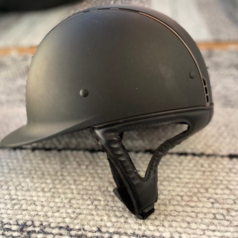 Horze Equestrian DX ratsastuskypärä. Väri musta ja koko 56. Kypärässä on säädettävä leukahihna ja sisäpuolella pehmustettu, hengittävä verkkomateriaali. Soveltuu ratsastuskäyttöön CE-hyväksynnän mukaisesti. Ei ole ollut käytössä kuin vain pari kertaa