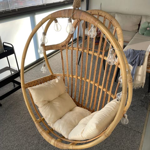 Myydään tyylikäs riippukeinu / rottinkituoli jalustalla.