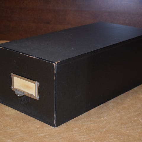 Kannessa lukee “LAATIKKO NRO 90 – Toimistotarvikkeet”.