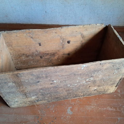 Sisäpuolen jaottelu tallella, mikä nostaa tämän kiinnostavuutta verrattuna tavallisiin vanhoihin laatikoihin.