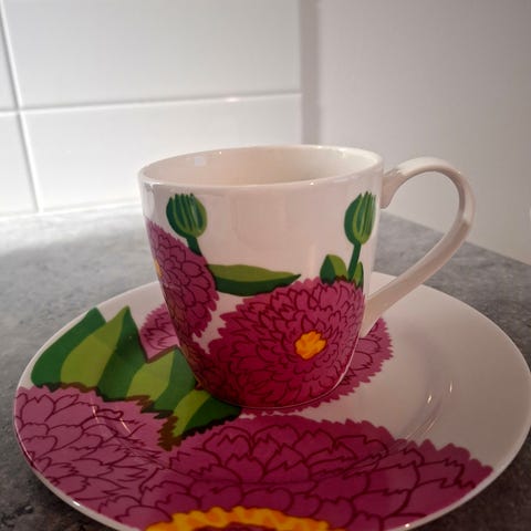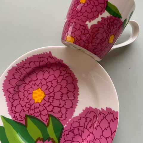 Marimekko Iittala Primavera mukit ja kulhot kukkakuvio valkoinen pinkki