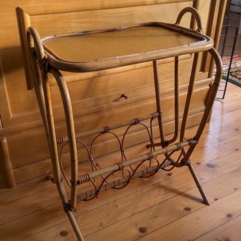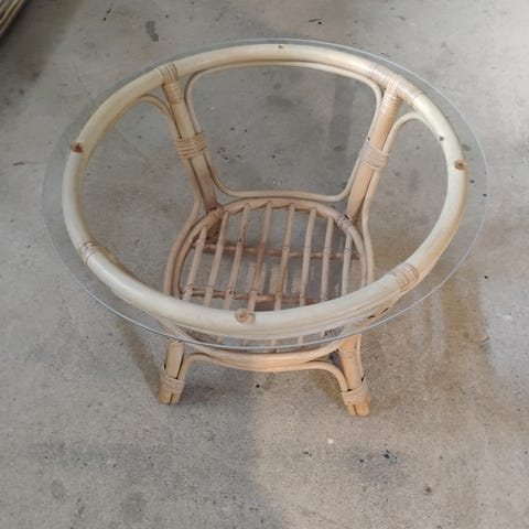 Myytävänä kaksi rottinkijakkaraa. Ei ihan priimakunnossa. Kuvassa näkyy miten toisesta on purkaantunut tuo rottinki.