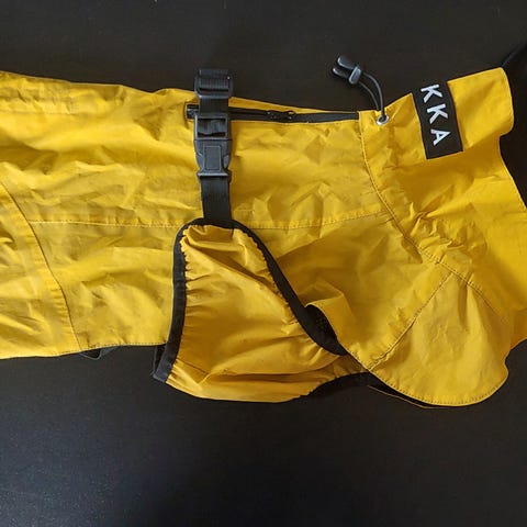 Paikka sadetakki on valmistettu 100 % vedenpitävästä kankaasta, ja sen saumat on teipattu, joten koira pysyy varmasti kuivana.