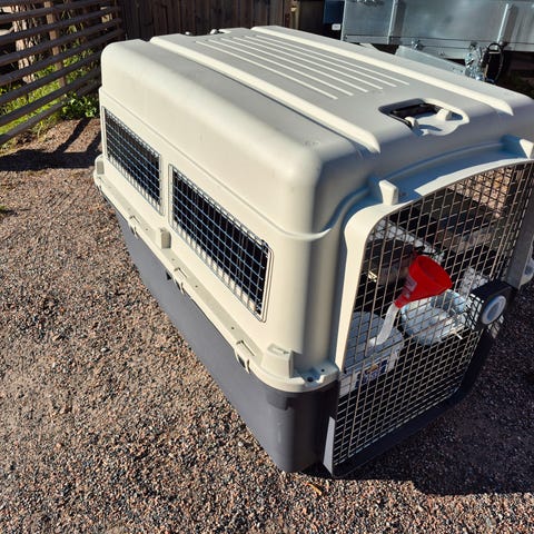Käyttämätön kuljetuslaatikko koiralle.