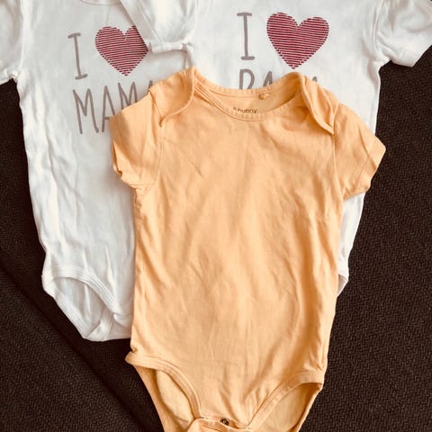 H&M lyhythihainen body koossa 74. Edessä kolme nappia. Hyväkuntoinen, aavistus pesunukkaa.