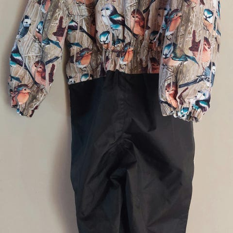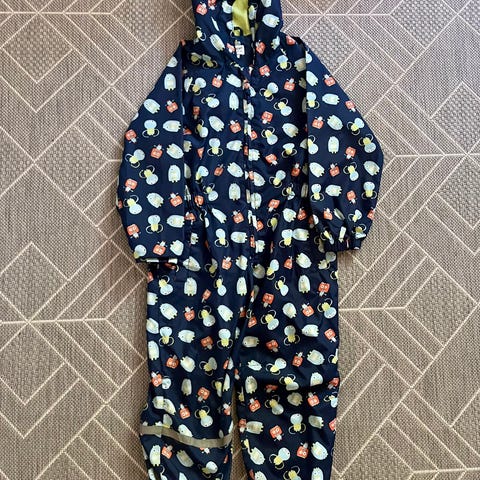 Kappahlin haalari koossa 110. Vyötäröllä ja lahkeensuissa kuminauha, sivuilla taskut. Hyväkuntoinen, aavistus pesunukkaa.
