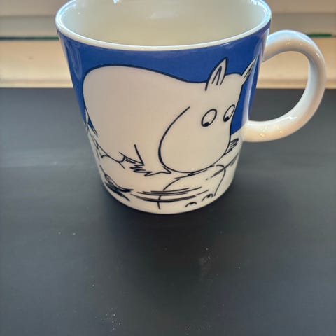 Myydään pari kertaa käytetyt, uudenveroiset Muumipeikko jäällä muumimuki ja -kulho.