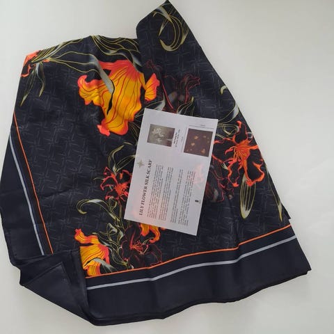 Upea musta-valkoinen Alexander Mqueen silkkihuivi. Hyvin pieniä lankavetoja, joita tulee helposti herkkään silkkiin. Eivät näy käytössä ja tämä huomioitu hinnassa.