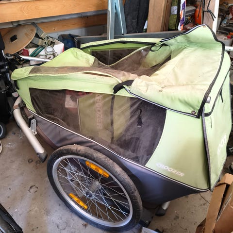 Lasten pyöräkärry kahdelle lapselle. 2024 ostettu ja käytetty vain n. 5 kertaa, joten todella hyvässä kunnossa. Säilytetty lämpimässä autotallissa.