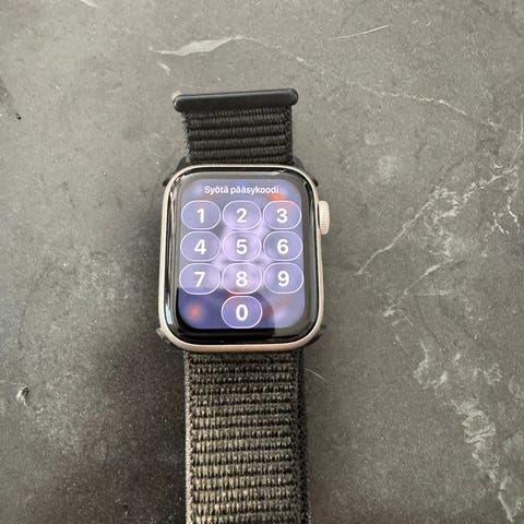 Erittäin vähällä käytöllä ollut Apple Watch SE gen 2 ei ole naarmuja eikä muutenkaan huomaa että ollut käytössä