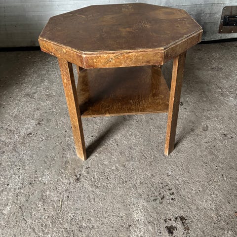 Kotimainen puinen pöytä 1950 -luvulta. Pöytä on n.s. tupakkapöytä.