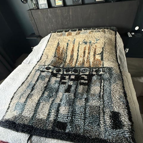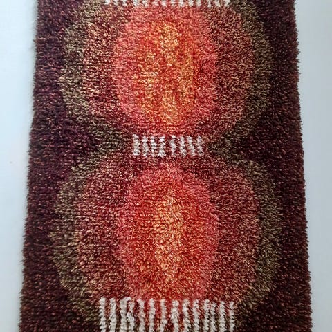 Kotimainen ryijy. Ryijy on Kirsti Ilvessalon suunnittelema ryijymalli "Metsässä palaa"