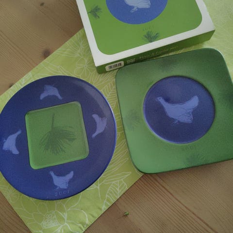 Arabia Flora & Fauna keräilylautaset vuosilta 2006 (laatikko puuttuu), 2007, 2008,2011.
