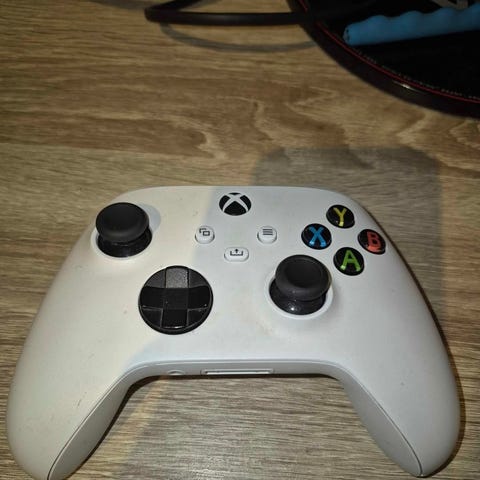 Valkoinen Xbox One ohjain. Ei driftaa, mutta oikean tatin painallus ei toimi ja hiukan kuori irvistää oikealta. Sopii vaikka kakkosohjaimeksi.