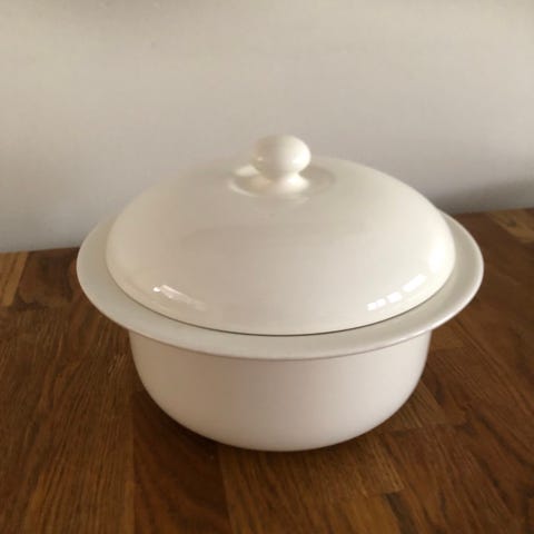Halkeama liimattu, sopii vaikka hedelmäkulhoksi, ei enää kuumalle ruualle.