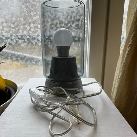 Ikea Skaftet pöytälamppu valkoinen lasikupu metallijalka