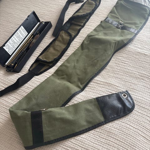 Sako asepussi. Vihreä pehmustettu pussi, jossa olkahihna kantamista varten sekä vetoketju. Soveltuu esimerkiksi metsästyskiväärin tai haulikon kuljettamiseen ja säilytykseen.