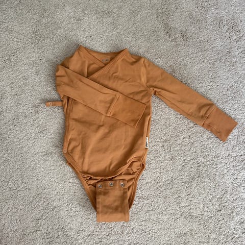 Käyttämätön, mutta käyttöönottopesty äitiyspakkauksen body, 62/68. Väri poltettu oranssi.
