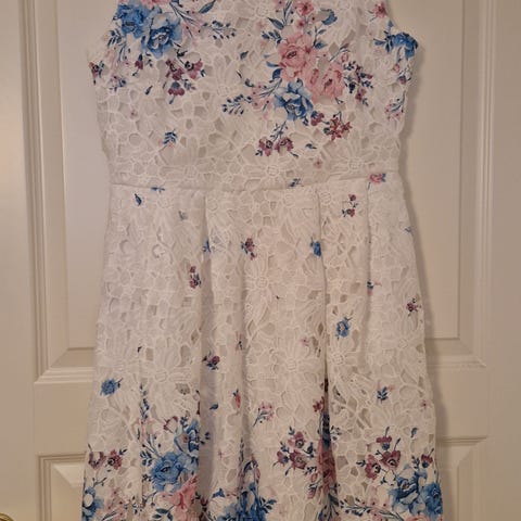 Valkoinen Zazabellan Dazzling-malliston juhlamekko/rippimekko/hääpuku. Koko 38. Ollut päällä kerran ja pesty sen jälkeen hyvin hellävaraisesti käsin.