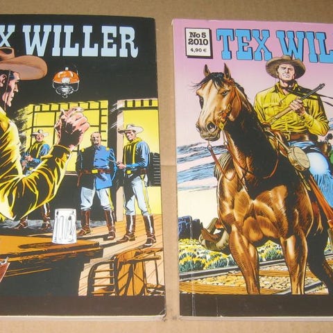 Tex Willer sarjakuvalehtiä v. 2001 ja 2003 ja Nuori Tex Willer -albumi nimeltä "Laupeutta ja lyijyä".
