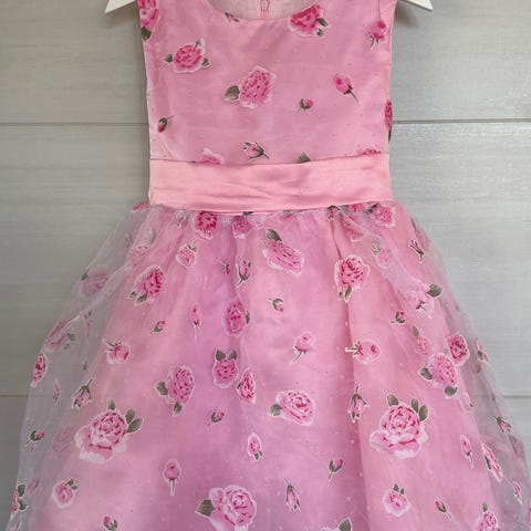 Tosi nätti ja raikas mintun sävyinen pitsinen juhlamekko, koko 120 (122). Vyötäröllä kiinteästi vaal.pun. satiinivyö ja ruusuke. Takana vetoketjukiinnitys. Vetoketjun vetimestä "maalipinta" pikkasen kulunut (kuva). Kokolappu poistettu, jolloin jäänyt pieni reikä kankaan sisäpuolelle (kuva). Ei kuitenkaan näy ulospäin juurikaan kun päällikangas on pitsinen.