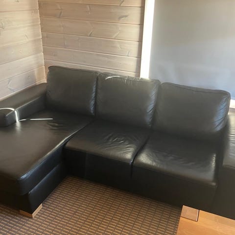 sohva, nahkasohva, musta sohva, kolmenistuttava sohva, 3-istuttava sohva, olohuone, koti, toimisto, konttori, mökki, sisustus, huonekalut, huonekalu, porvoo ,mäntsälä