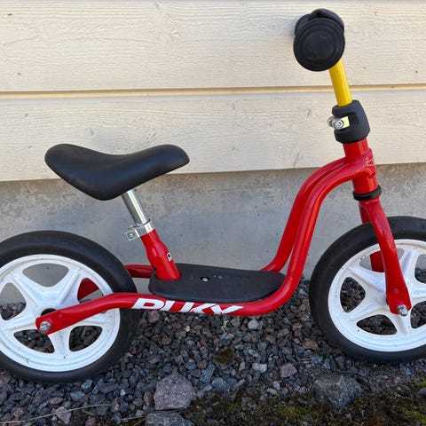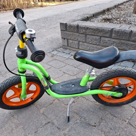Toimiva potkupyörä ilmakumi renkailla. Takajarru toimi hyvin, etu jarru ottaa hieman kiinni jarruttaessa. Jonkun verran ruostetta rungossa.